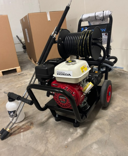 Professional-grade Honda GX200 pressure washer with gearbox drive, optimized for extended use in both residential and commercial cleaning applications.